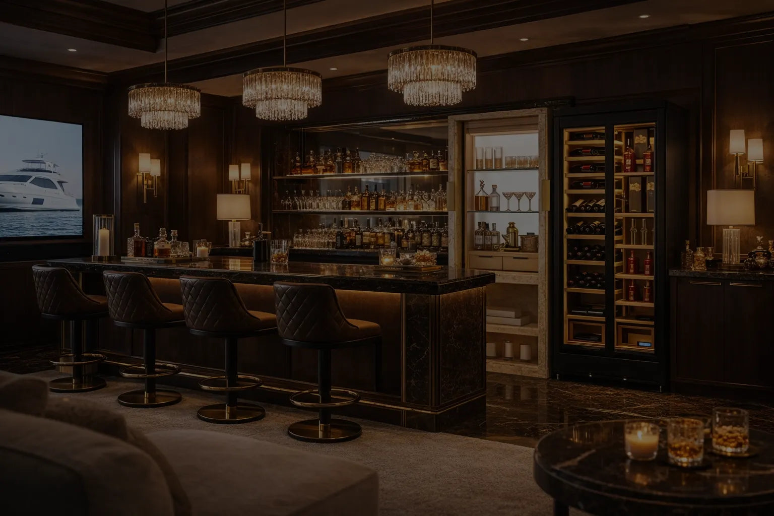 Preserve and showcase your wine collection with our Signature Wine Cooler, designed for refined entertainment spaces. Featuring precise temperature control, whisper-quiet operation, and a sleek glass-front design, it keeps every bottle at its ideal serving condition. Whether paired with a game room, golf simulator, or private lounge, this wine cooler adds both luxury and convenience to your VistaRoom experience.